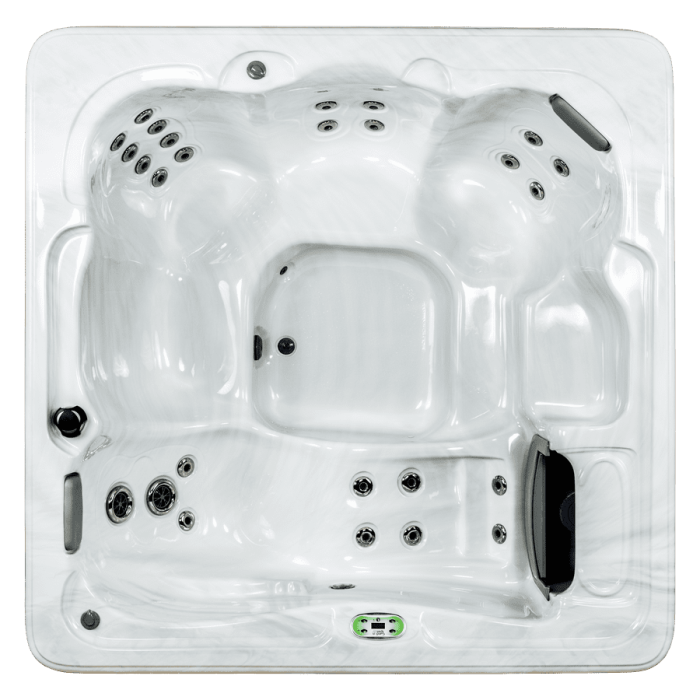 Size: 84 x 84 x 36 in. | 213 x 213 x 91 cm. Seating: 6 seats Jets: 27 jets Capacity: 330 gal | 1,249 L Dry Weight: 730 lbs | 331 kg Pumps*: 1.5 BHP 2-Spd 120 V